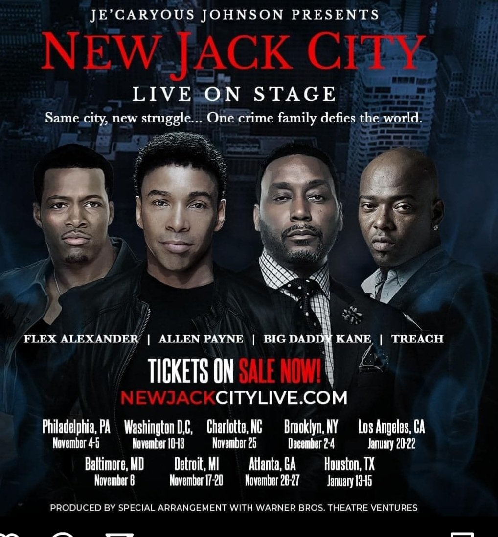 The production is set to hit the road this coming November hitting several cities. Buy JeCaryous Johnson Presents NEW JACK CITY tickets at the Music Hall Center in Detroit MI for Nov 20 2022 at Ticketmaster. Cast includes Allen Payne who will reprise his role as Gee Money Treach Big Daddy Kane and Flex Alexander. New Jack City was originally released in 1991 with Wesley Snipes Ice-T and Chris Rock which told the story of drugs gangs and life in New York City during the crack era.
